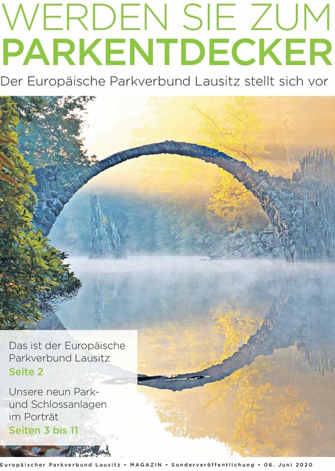 Eine Sonderbeilage informiert über den Europäischen Parkverbund Lausitz, die in ihm zusammengeschlossenen Parkanlagen sowie Veranstaltungshöhepunkte des Jahres. Entdecken Sie die Fürst-Pückler-Parks in Branitz und Bad Muskau/Leknica, den Ostdeutschen Rosengarten Forst (Lausitz), die Schlossparks in Altdöbern und Neschwitz, den Rhododendronpark Kromlau sowie die Parkanlagen im polnischen Brody, Żagań und Zatonie.